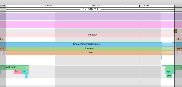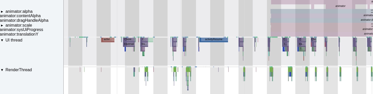这些实际的案例 , 很多都可以在 Systrace 上看出来 , 所以我的很多贴图都是 Systrace 上实际被发现的问题 , 如果你对 Systrace 不了解 , 可以查看这个 Systrace 系列 , 这里你只需要知道 , Systrace 从系统全局的角度 , 来展示当前系统的运行状况 , 通常被用来 Debug Android 性能问题 .