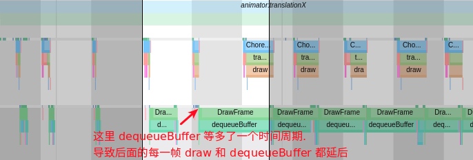 SurfaceFlinger 有时候会出现 Vsync 不均匀的情况, 不均匀指的是 Vsync 间隔会持续地变化, 一会大一会小, 就会导致用户看到的画面不均匀, 有卡顿感