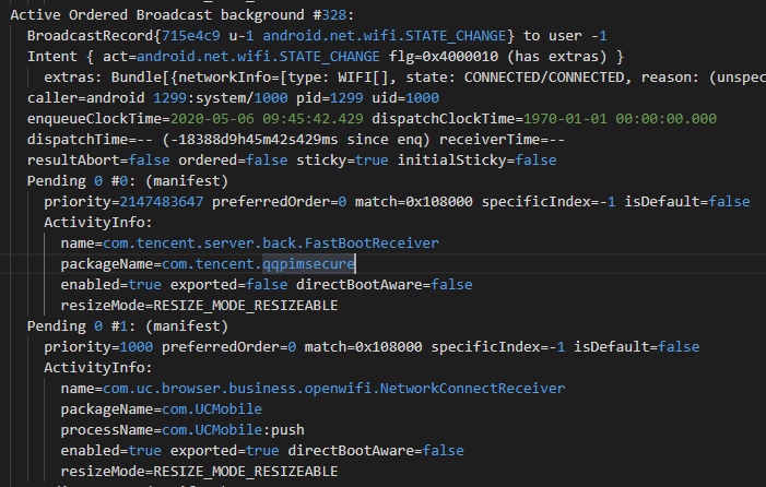 下图可以看到五个监听了网络变大的广播接收器 (只显示了五个 , 其实有 200 多个) , 监听到网络变化后拉起自身