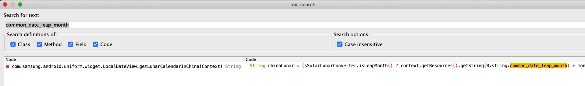 但是通过上面的分析我们发现, 频繁 Crash 的版本就是因为找不到 common_date_leap_month 这个字段才 Crash 的, 既然找不到那也应该编译不过才对, 但是既然我们拿到了 apk, 那说明编译也是没问题的.
