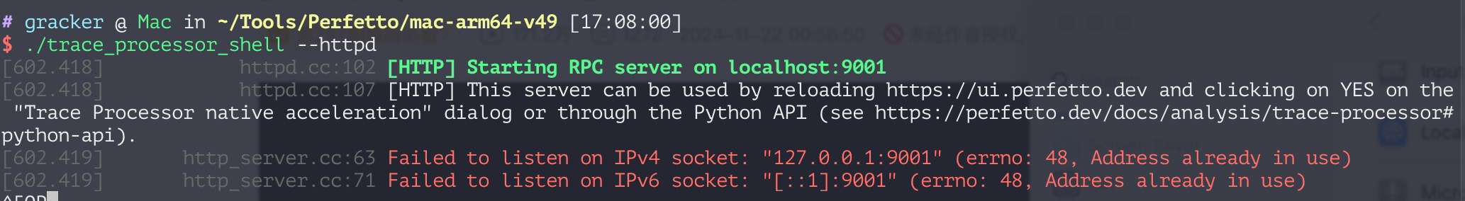 Mac 上直接运行 ./trace_processor_shell –httpd 会报下面的错误