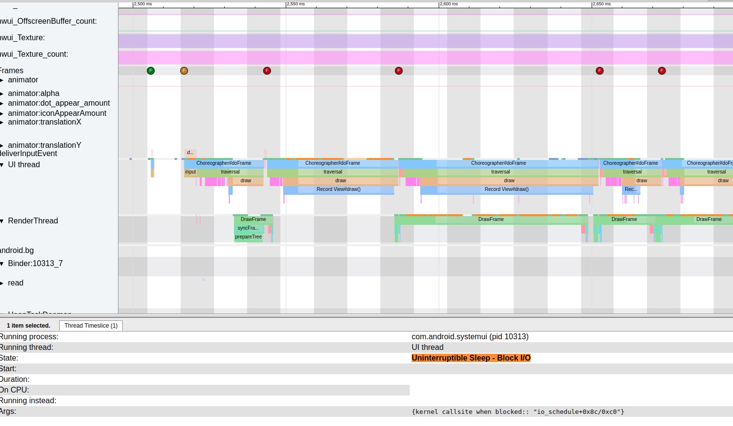 - In a Systrace, this appears as many yellow/orange thread states: